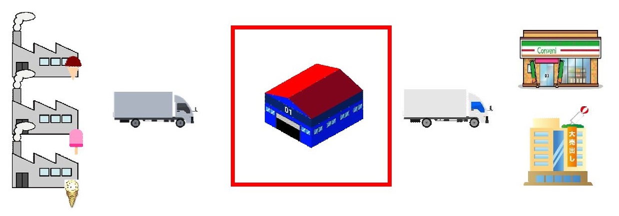 工場で作られたアイスや冷凍食品の多くは直接お店には行かず、当社の様な冷凍倉庫へ保管されます。皆さんが普段食べているアイスや冷凍食品は、冷凍倉庫で一度保管された後にお店に出ている、という事になります。目立つことはないけれど、私たちの生活にはなくてはならない存在なのです。