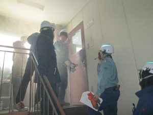 救助訓練の様子です。 煙体験前の様子です。