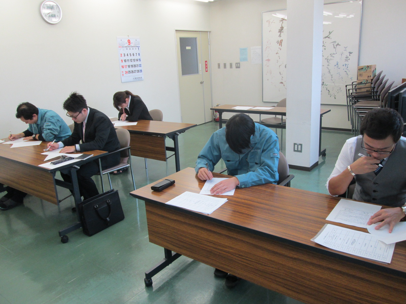 下の写真は常識力テストを実施している時の様子です。テストを通じて、ビジネスマナーや一般常識などの知識を深めました。