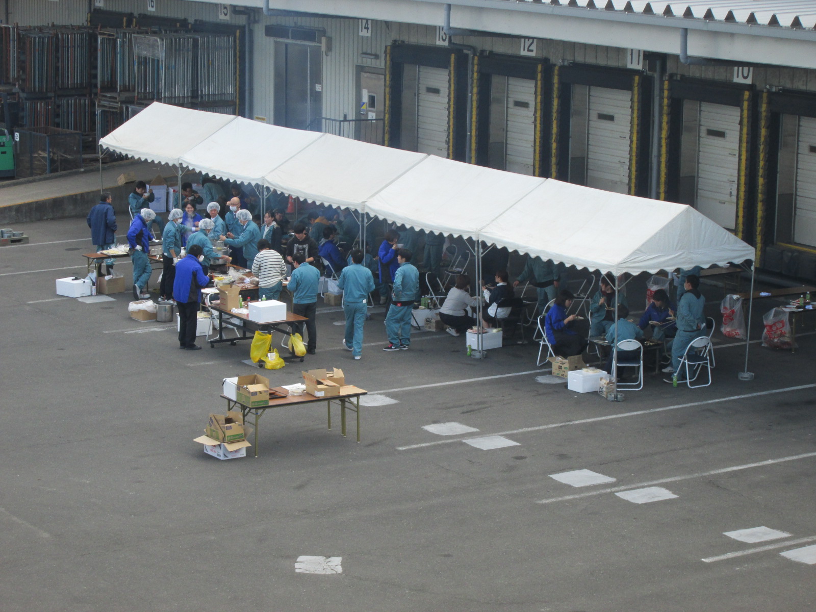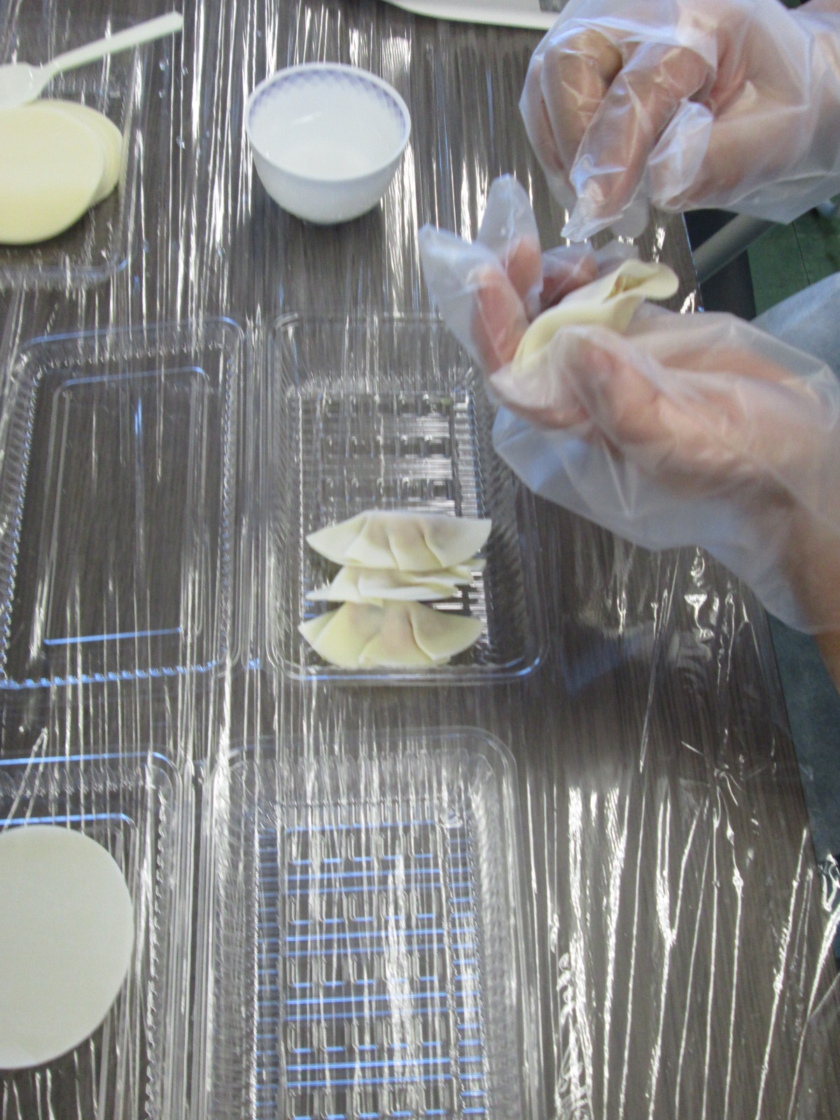 餃子はタネ作りから始め、従業員が交代で包みました。慣れない作業に悪戦苦闘している人も多く、普段とは違った一面が見られました。