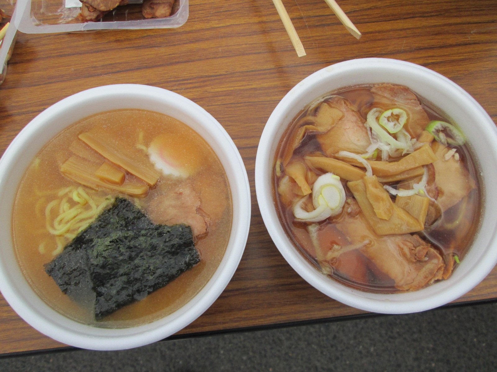 ↓完成したラーメンがこちら!!左が味噌で右がしょうゆです。(※トッピングはセルフサービスの為、出来上がりに個人差があります。)どちらも大成功でしたが、特に味噌味が好評でした!